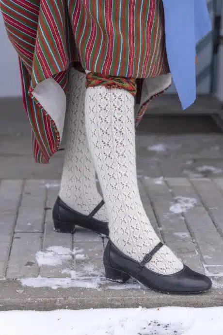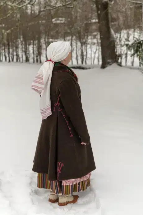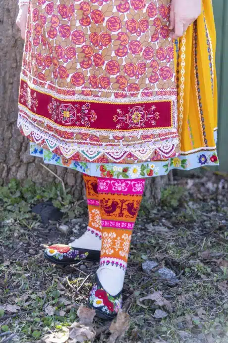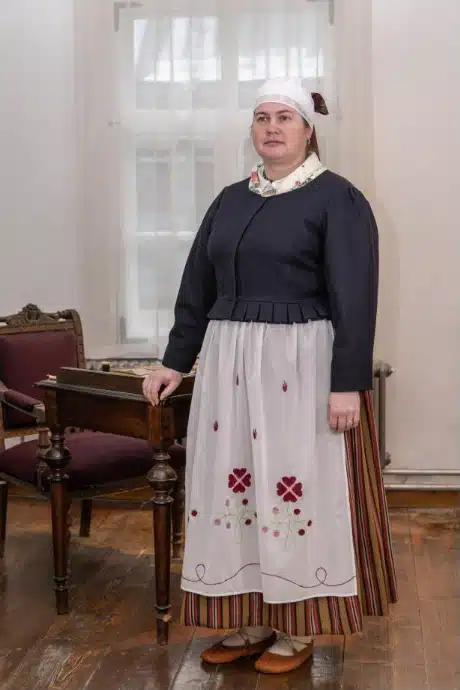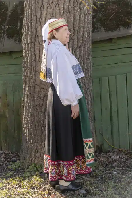 Lehel olevad fotod loovad silla ajaloo ja tänapäeva vahele, näidates seda, kuidas Eesti inimesed tänapäeval rahvarõivaid valmistades seda teavet kasutanud on.